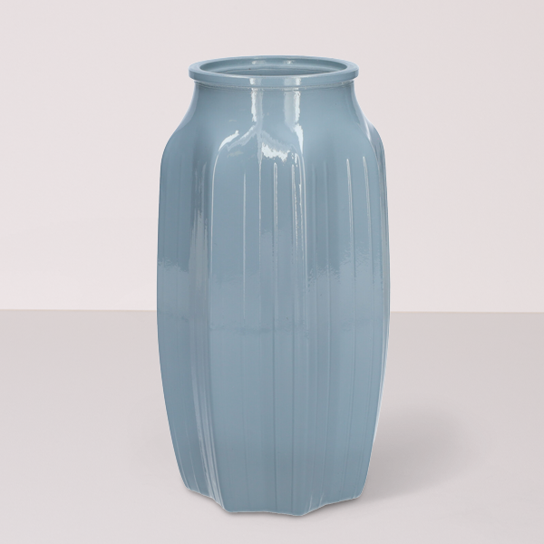 Elegante, lichtdurchflutete Glasvase in sanftem Hellblau. Mit ihrer klaren Form und dem leuchtenden Farbton setzt sie frische Akzente und präsentiert Blumen stilvoll – ein zeitloses Highlight für jedes Zuhause.