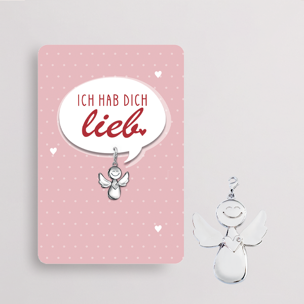 Sag „Ich hab dich lieb“ auf besondere Weise: liebevolle Grußbotschaft inklusive kleinem Schutzengel-Anhänger zum Mitnehmen, Erinnern und Schützen. Perfekt für Herzensmenschen!