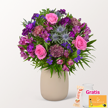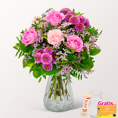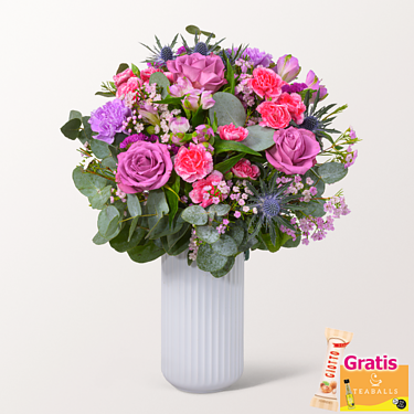 Rose oder einem attraktiven Gesteck bestehen. Mit ergänzenden Accessoires wie einem Luftballon,