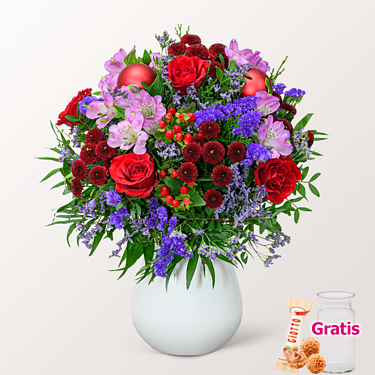 Auch für die Freunde von weihnachtlichen Blumensträußen haben wir eine große Anzahl an schönen Weihnachtssträußen, die Du in den unterschiedlichsten Farben und Blumen-Zusammenstellungen erhältst. Diese eignen sich zu den Weihnachtstagen und in der gesamten Adventszeit als Geschenk für gute Freunde und Verwandtschaft. Für jeden Geschmack ist etwas dabei.