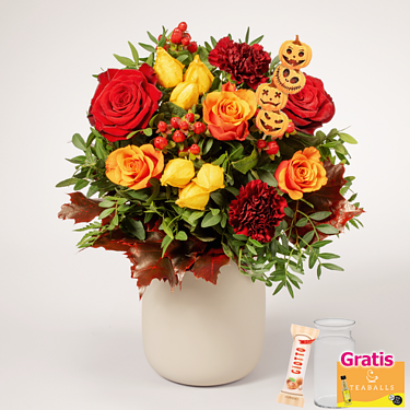 Unser Sortiment greift die bunte Vielfalt der Natur auf und bündelt sie im wahrsten Sinne des Wortes: Jeder von uns angebotene Herbststrauß beinhaltet typische Elemente der Jahreszeit und bildet ein prächtiges Arrangement aus Formen, Farben und Strukturen. Damit sein Reiz erhalten bleibt und die Empfänger das Gebinde gleich aufstellen können, legen wir jedem Herbststrauß vor dem Verschicken eine Vase bei. Deren Größe und Dekor sind optimal auf den floralen Gruß abgestimmt, so dass Dein herbstlicher Blumenstrauß am Bestimmungsort bestens versorgt werden kann. Das garantiert Dir und dem Empfänger Frische für mindestens 7 Tage und verlängert die Freude an Deinem sorgfältig ausgewählten Strauß. Darüber hinaus hast Du die Möglichkeit, dem Gebinde eine Grußkarte beizulegen. Hier kannst Du eine kleine Nachricht oder ein jahreszeitliches Gedicht hinterlassen. Dadurch wird Dein herbstlicher Blumenstrauß noch persönlicher.