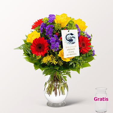 Unser Sortiment greift die bunte Vielfalt der Natur auf und bündelt sie im wahrsten Sinne des Wortes: Jeder von uns angebotene Herbststrauß beinhaltet typische Elemente der Jahreszeit und bildet ein prächtiges Arrangement aus Formen, Farben und Strukturen. Damit sein Reiz erhalten bleibt und die Empfänger das Gebinde gleich aufstellen können, legen wir jedem Herbststrauß vor dem Verschicken eine Vase bei. Deren Größe und Dekor sind optimal auf den floralen Gruß abgestimmt, so dass Dein herbstlicher Blumenstrauß am Bestimmungsort bestens versorgt werden kann. Das garantiert Dir und dem Empfänger Frische für mindestens 7 Tage und verlängert die Freude an Deinem sorgfältig ausgewählten Strauß. Darüber hinaus hast Du die Möglichkeit, dem Gebinde eine Grußkarte beizulegen. Hier kannst Du eine kleine Nachricht oder ein jahreszeitliches Gedicht hinterlassen. Dadurch wird Dein herbstlicher Blumenstrauß noch persönlicher.