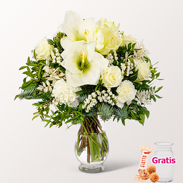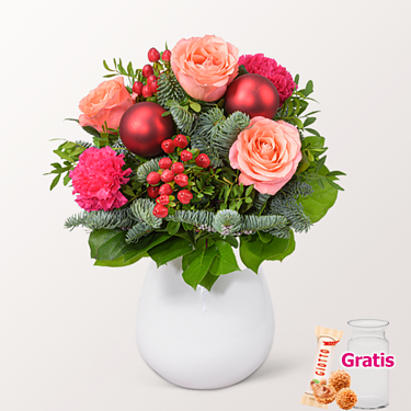 Auch für die Freunde von weihnachtlichen Blumensträußen haben wir eine große Anzahl an schönen Weihnachtssträußen, die Du in den unterschiedlichsten Farben und Blumen-Zusammenstellungen erhältst. Diese eignen sich zu den Weihnachtstagen und in der gesamten Adventszeit als Geschenk für gute Freunde und Verwandtschaft. Für jeden Geschmack ist etwas dabei.