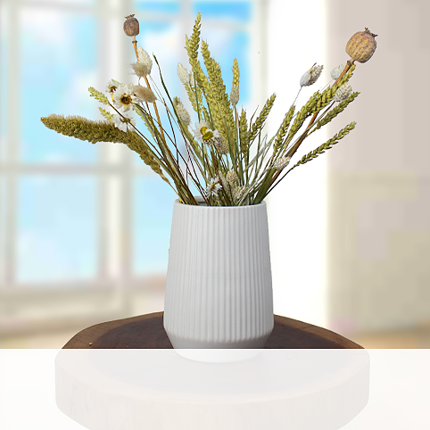 Dieser leichte Trockenstrauß in hellen Tönen ist 35 cm lang und besteht aus Phalaris, Papaver, Tarwe (Triticum), Setarea, Acroclinium und Lagurus Ovatus. Er ist das perfekte Geschenk für jeden Anlass!