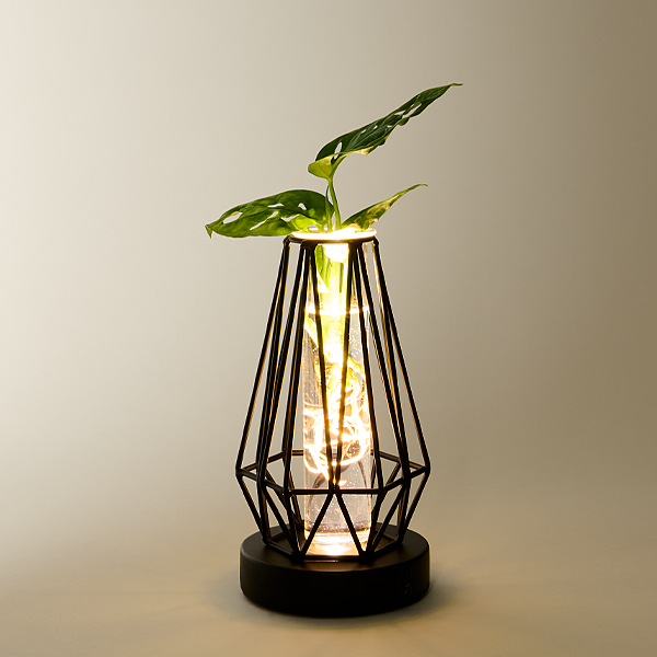 Die Kultpflanze Monstera als Water Plant in einem modernen Gestell aus Metall und Glas mit integriertem LED-Licht. Unsere Monstera steht im Wasser und ist ein absolut originelles Dekorationselement, denn Zimmerpflanzen im Wasser sind der Wohntrend schlechthin. Und zusätzliche noch in einem ausgefallenen Gestell mit eigener Belichtung - was will man mehr. Eine solche Hydrokultur sieht nicht nur toll aus, sondern lässt die Wurzeln der Monstera auch besser atmen, wodurch die Pflanze pflegeleicht in Wohnräumen zu halten ist. Wer Spaß an Blumen und Zimmerpflanzen in tollen Vasen hat, wird diese Waterplant lieben. Die Pflanze ist mit Glas ca. 30 cm hoch.Hinweis: Das Gefäß wird mit Batterien (AA) betrieben.Die Pflanze ist giftig.