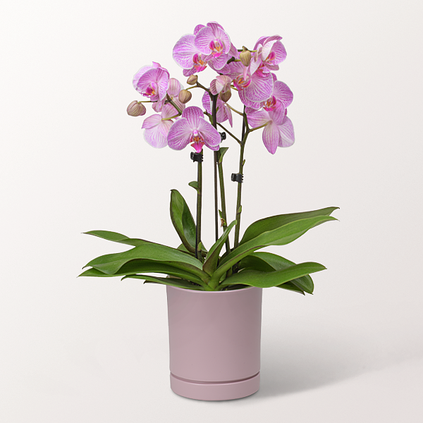 Wunderschöne Orchidee in Rosa in einem modernen Keramiktopf (ca. 12,5 cm). Größe ca. 60 cm. Mit ausführlicher Pflegeanleitung.Hersteller:FloraPrima GmbHDidderser Str. 2838176 Wendeburginfo@floraprima.de